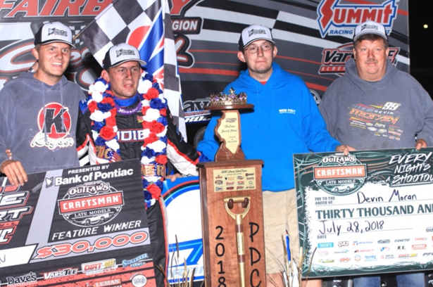 Devin Moran during the annual 'Prairie Dirt Classic' at Fairbury (IL) A.L. Speedway in July 2018